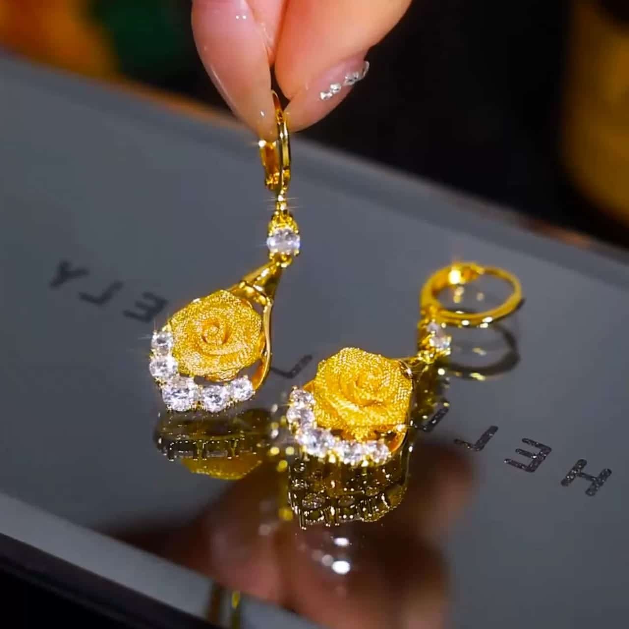 - এই Golden রোজ ফ্লাওয়ার ইয়ারিংস শুধু একটি গহনা নয়—এটি প্রতিটি নারীর সৌন্দর্যের পরিপূর্ণতা।